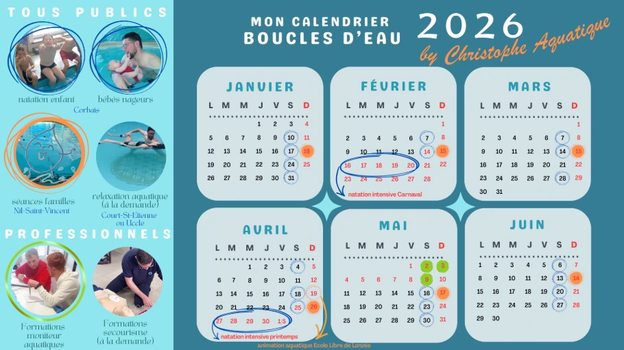 Envie de donner un coup de boost à ses capacités dans l'eau ? Durant certains congés scolaires, je propose 1 séance par jour durant 5 jours.